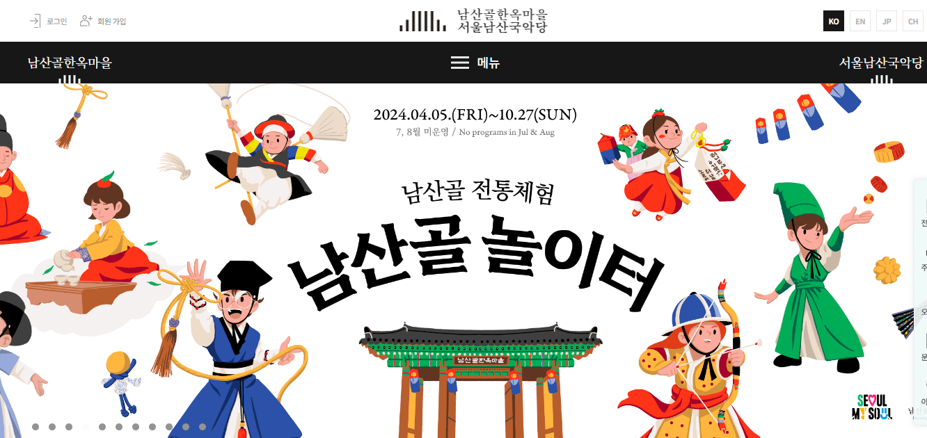 남산골한옥마을은 서울 도심의 전통문화 공간으로 조선시대 풍류를 즐기던 곳으로 유명한 곳으로 한옥마을과 전통정원으로 조성되어 있으며, 다양한 전통문화를 체험해 볼 수 있습니다.
