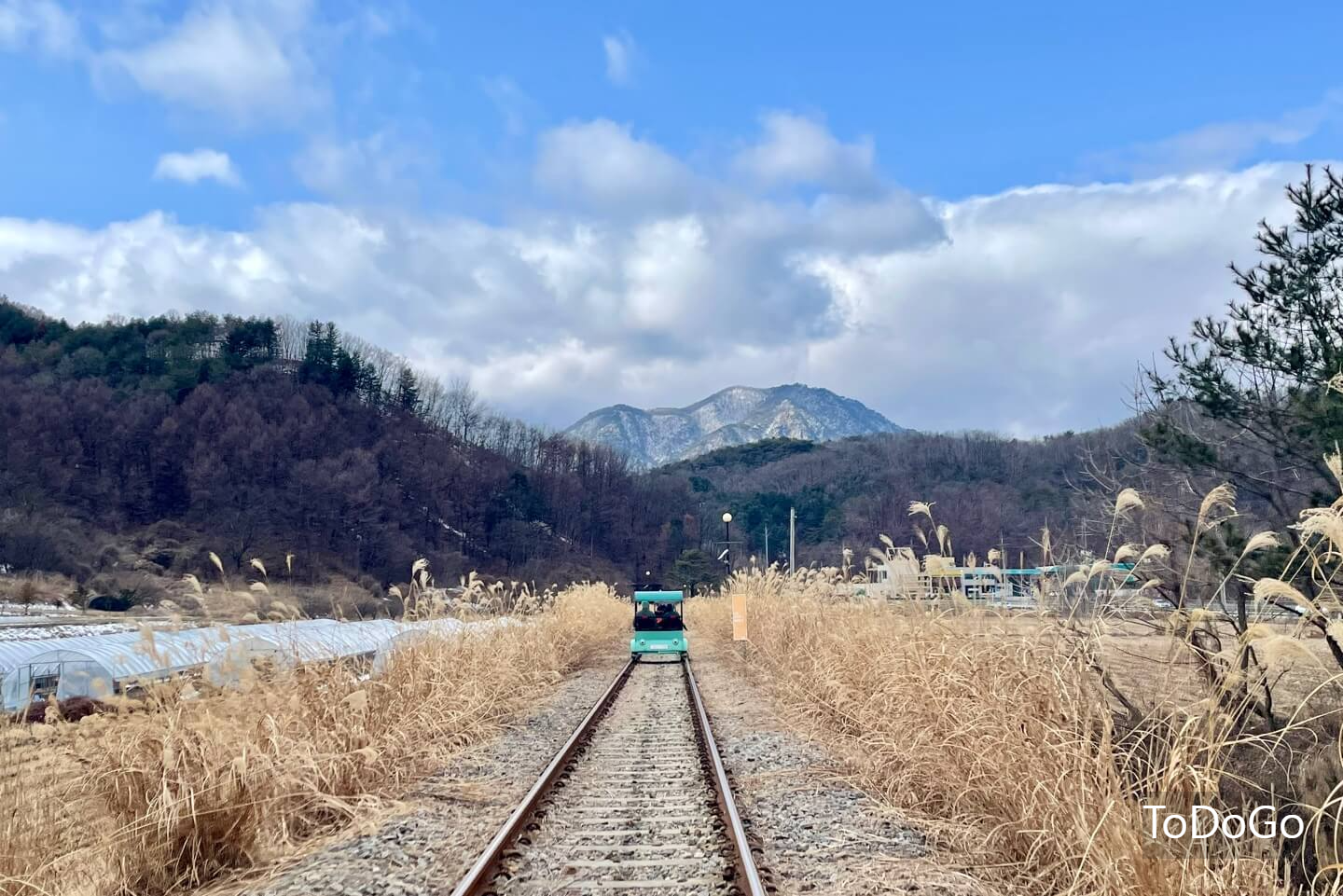 김유정 레일바이크는 동절기에는 오전 9시부터 16:30분까지 총 8회 운행, 하절기에는 9회 운행하며, 성수기인 5월, 10월에는 총 10회 운행합니다. 총거리는 레일바이크를 이용하는 김유정역에서 낭구마을까지 6km이고, 낭구마을에서 레일바이크 하차 후 낭만열차를 탑승하는 구간은 2.5km로 총 50분 정도의 시간이 소요 됩니다.