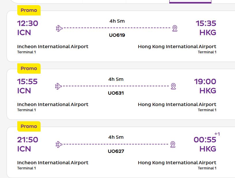 • 도착 시간: 다음 날 오전 12시 30분 (홍콩 국제공항 도착)