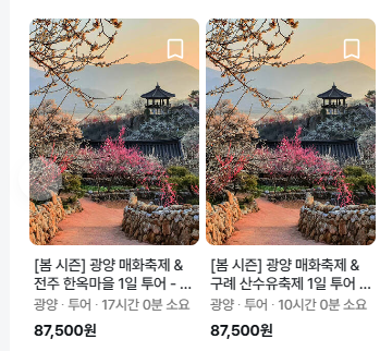 광양매화축제& 전주 한옥 마을 1일 투어 여행 프로그램도 있으니 관심 있으신 분들은 함께 확인해 보시길 바랍니다.